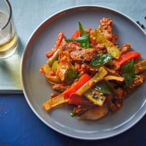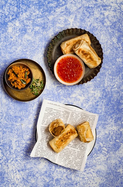 Breadcrumb coated pastry rolled in curried mutton & potato.