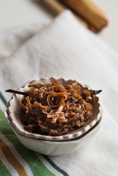 Savoury fried chana dhal cake with onion, chilli flakes & fennel.