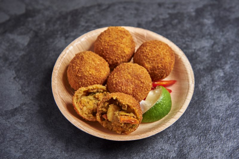 Lightly spiced mixed vegetables & potato cutlet coated in breadcrumbs.