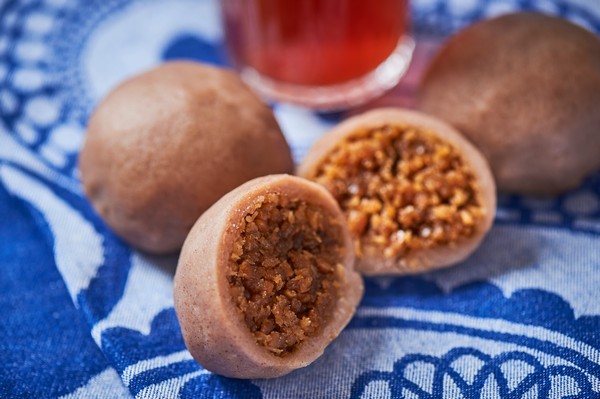Deep-fried light batter puff filled with sweet moong dhal mix.