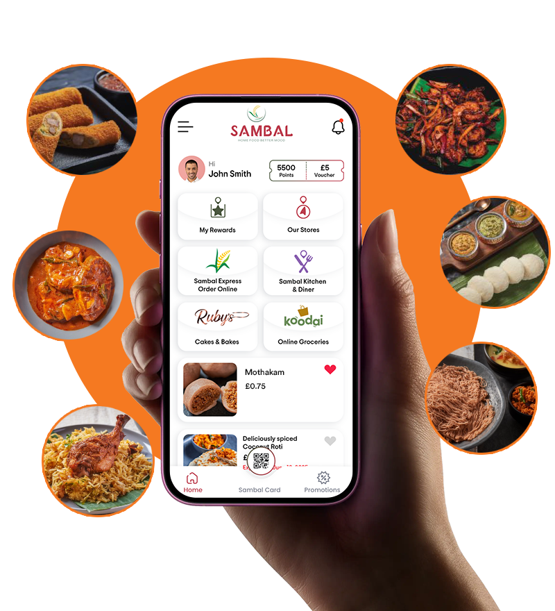 Since 2008, we've shared the bold, vibrant flavours of Sri Lanka with food lovers across the UK. From our restaurant to our delis, every meal is crafted with care, spice, and a touch of home. Now with the Sambal Express app, ordering is faster – and more rewarding.